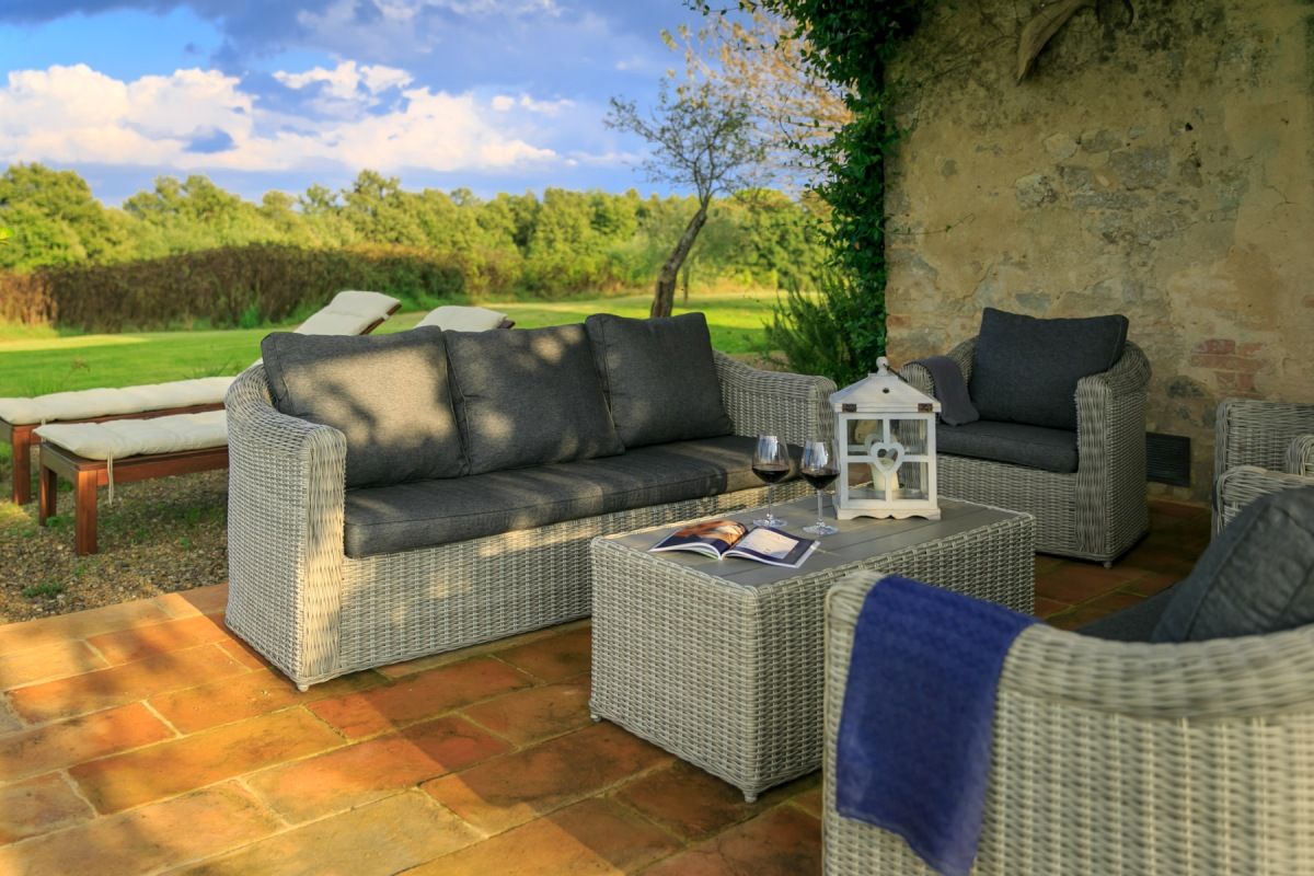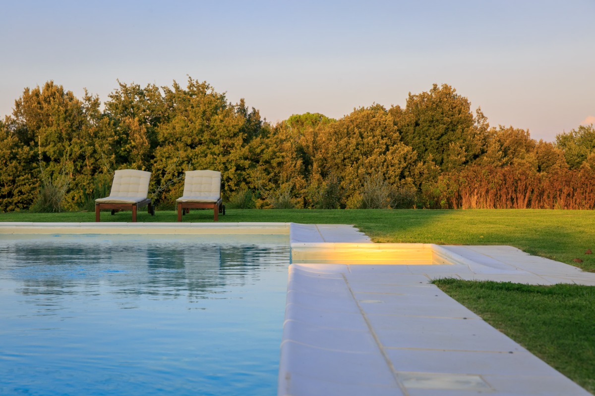 The villa is surrounded by an exquisitely-kept garden where you will find a magnificent swimming pool and an exceptional poolside area equipped with comfortable sun loungers to bask in the sun. Offering a peaceful atmosphere, this exclusive area beside the pool represents the perfect place for enjoying wonderful moments of relaxation in the company of a good book and a glass of prosecco. The garden also boasts a generous al fresco lounge and dining area under a pergola, where guests can enjoy traditional Italian food and unforgettable sunsets. Outside, you will also find a bocce court and an exclusive sauna where guests can relax after a long day of sightseeing.