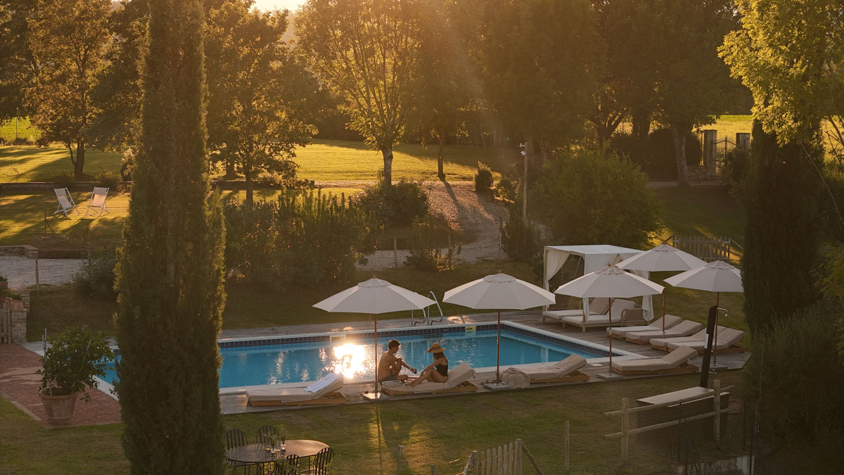 With beamed ceilings, terracotta floors, and bright rooms, the villa is spread across three floors. On the ground floor, the fully-equipped gourmet kitchen opens onto the courtyard, with doors leading to the al fresco dining area. Adjacent to the kitchen is a wine cellar offering a selection of local wines (available at extra cost). The ground floor also includes an elegant dining room seating up to twelve, a spacious living room with a decorative open fireplace, and a recreation room complete with a pool table.