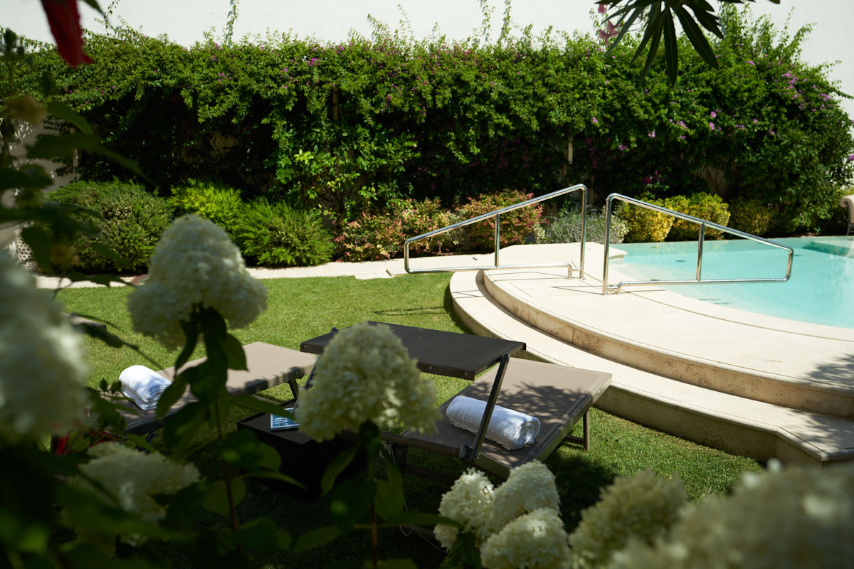 The outdoor areas celebrate Mediterranean living in harmony with the surrounding seascape. The 300 sqm garden is the heart of the villa during the warmer months, offering an enchanting setting for relaxation. The swimming pool (heated with an extra charge) is accessed via Roman steps and enhanced by four hydromassage jets. The pool is in front of a leisure area furnished with sun loungers and a charming lounge corner with sofas, while a large umbrella-shaded dining area provides the perfect spot for al fresco lunches.