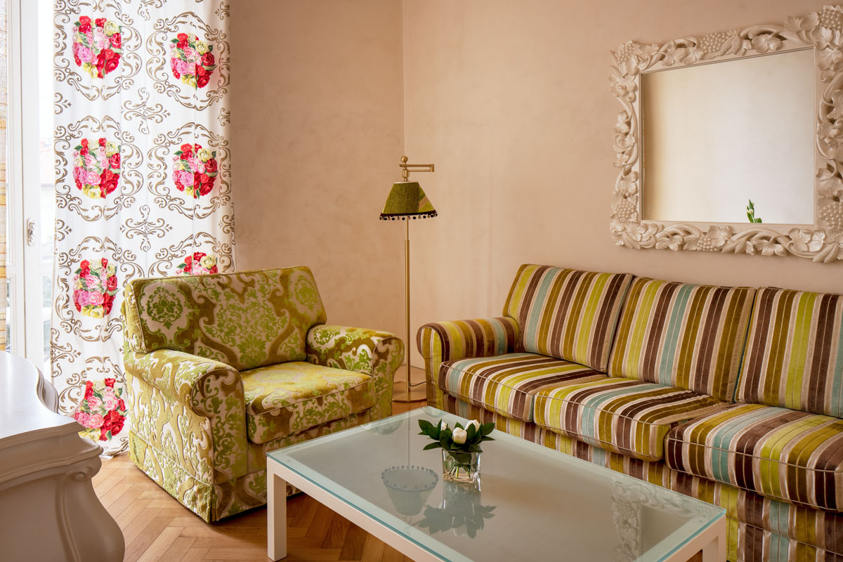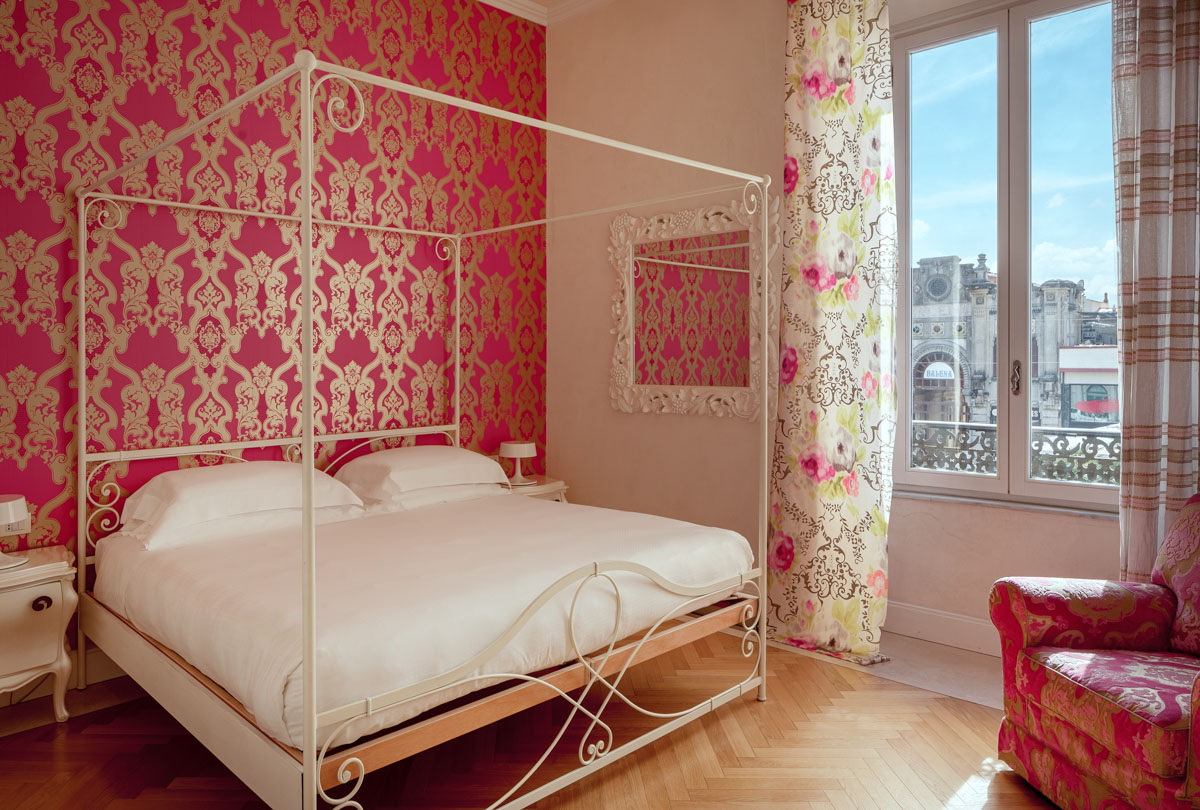 On the second floor, a hallway leads to a Family Suite, composed of two interconnected double bedrooms sharing a centrally located en-suite bathroom fitted with a shower, creating an excellent solution for families travelling together. This level is completed by four Superior bedrooms: one double bedroom, two twin rooms, and one single room, all featuring en-suite bathrooms equipped either with a bathtub with integrated shower or with a separate bathtub and shower.