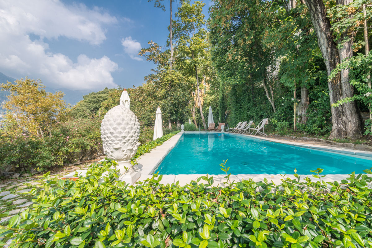 The villa’s exterior is a true testament to its historical charm and natural beauty. Surrounded by lush parkland, it boasts furnished terraces with panoramic views of the lake, making it the perfect spot for relaxation and al fresco dining. Since 2013, Villa dei Cigni also features a private pool, located on an elevated piece of land, offering complete privacy and tranquility. Accessible via a charming stone path, the pool area provides a serene retreat with stunning vistas of the surrounding landscape.