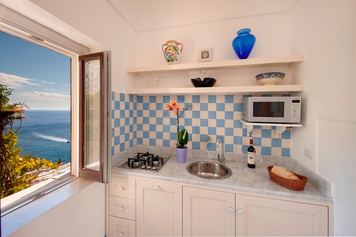 The Torre itself dates to the 13th century and is recognised as a UNESCO World Heritage site. Guests can unwind on the private terrace or explore the shared facilities: a private path leads down to the shared pool and a small beach, both of which are shared with the other guests of the Torre di Positano complex (the beach is equipped with sun loungers and parasols). With its position above Tramontana Apartment, Libeccio Apartment enjoys a serene atmosphere and magnificent views of Positano’s main beach.