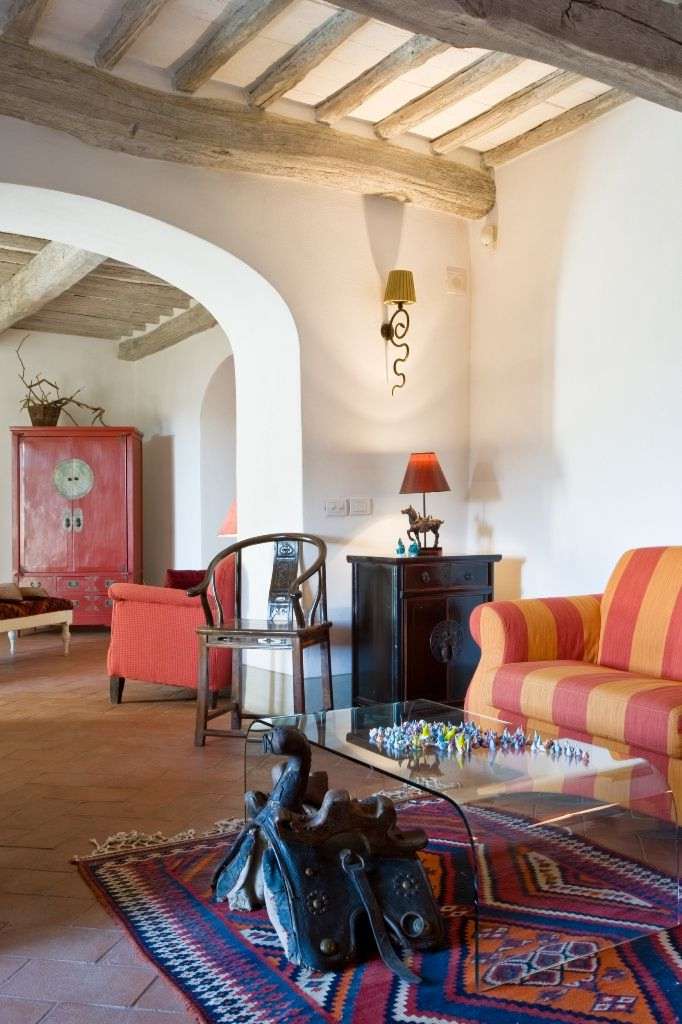 The Property. This enchanting Tuscan farmhouse sleeps up to ten guests in five, glorious, double bedrooms, each with its own spacious, private bathroom. The bedrooms all have wood-beamed ceilings, terracotta floors, plenty of wardrobe space and far-reaching views across the unspoilt countryside. Two of the bedrooms are on the ground floor and other three are on the first floor. The first floor also offers its guests an extra sitting room, ideal for a quiet afternoon spent reading or catching up on the newspapers.