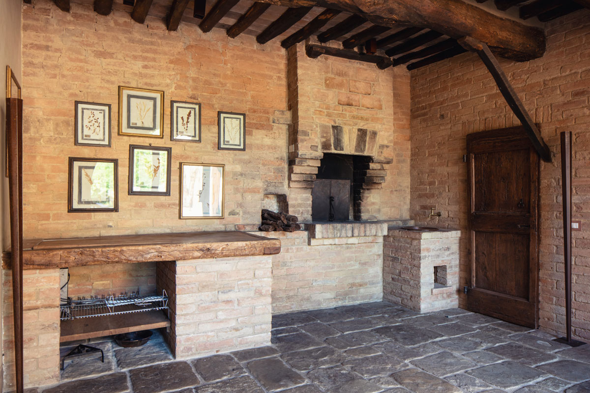 Inside, Property 10689 combines rustic elegance with modern comfort. Original wood beams, cotto floors, and stone archways have been carefully restored and paired with a contemporary layout. The spacious kitchen and dining area includes a traditional Tuscan fireplace. An open living room with an adjacent viewing room provides ample space for socialising, while the forno room with its original brick oven adds authentic charm. Guests can also enjoy the interior courtyard with a pergola-covered dining area.
