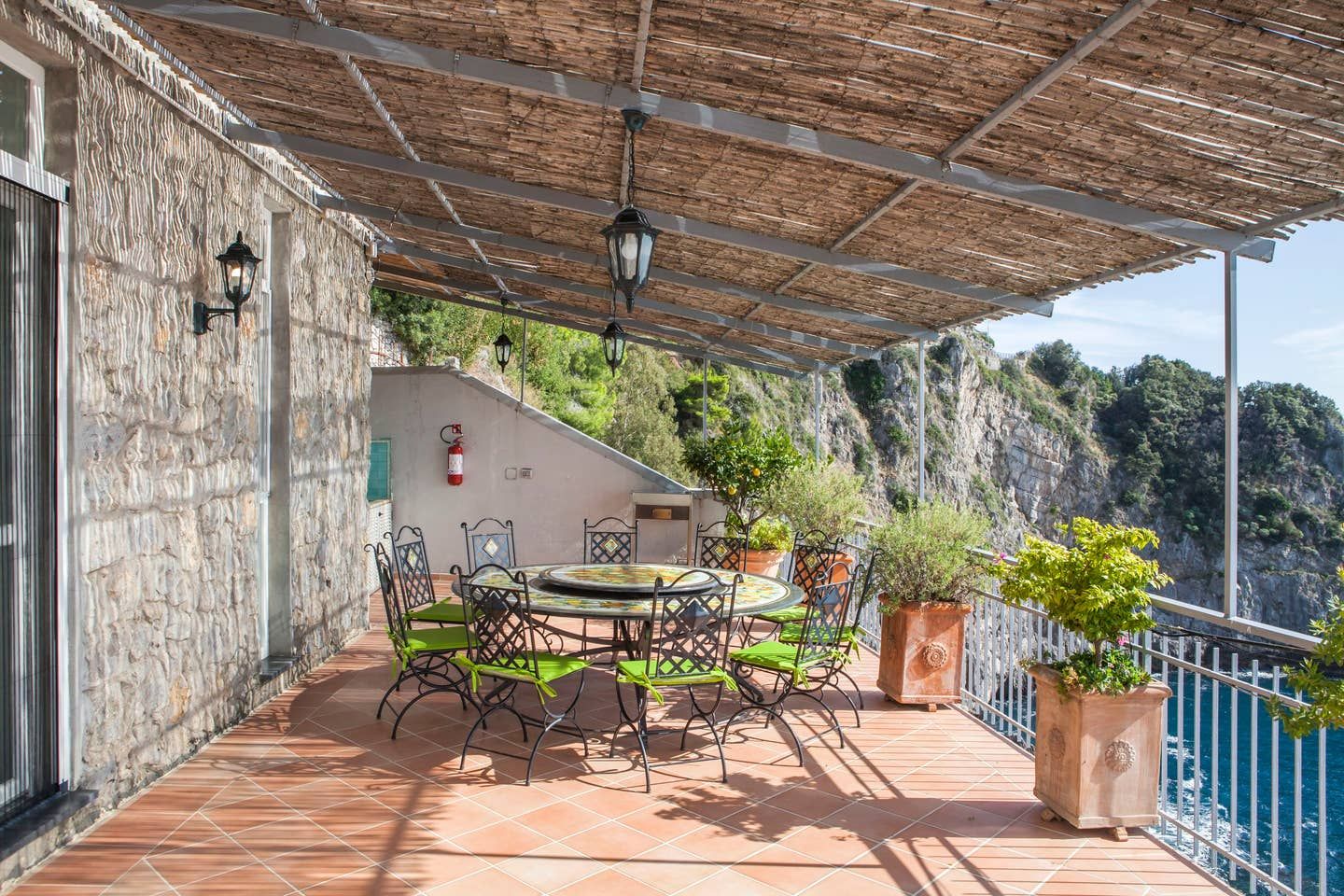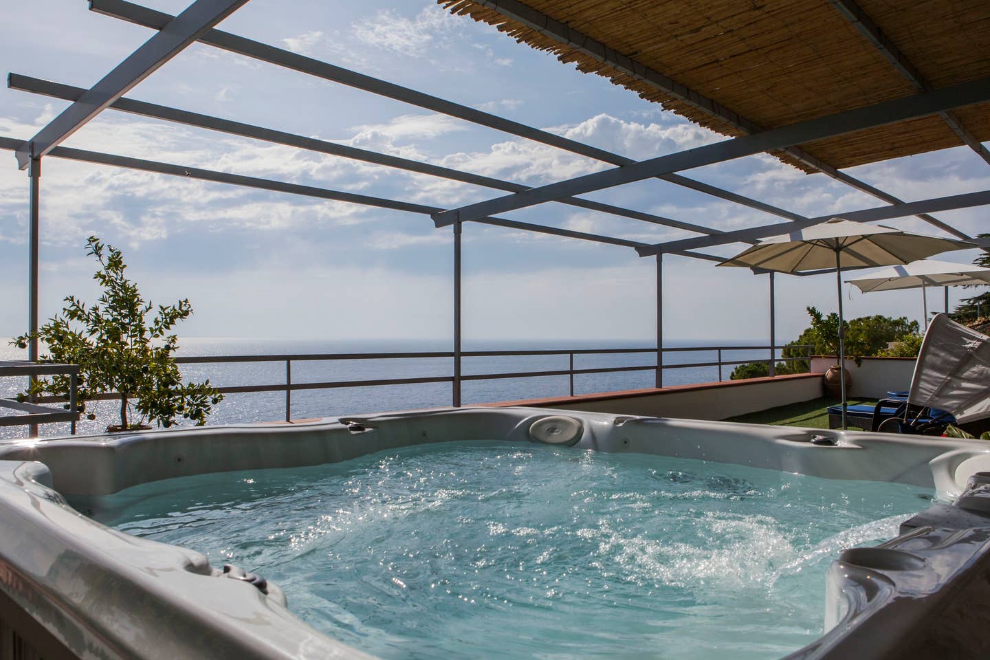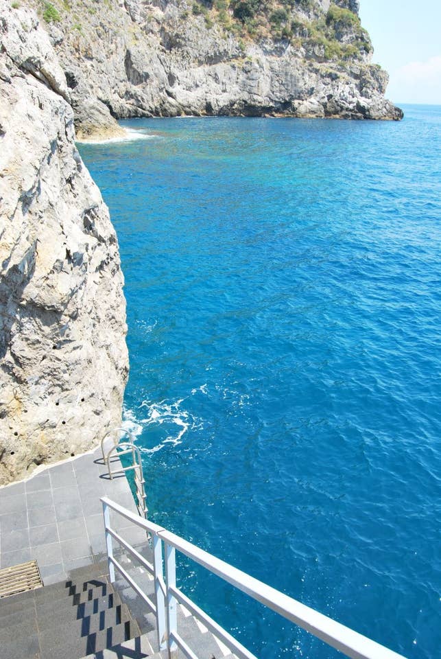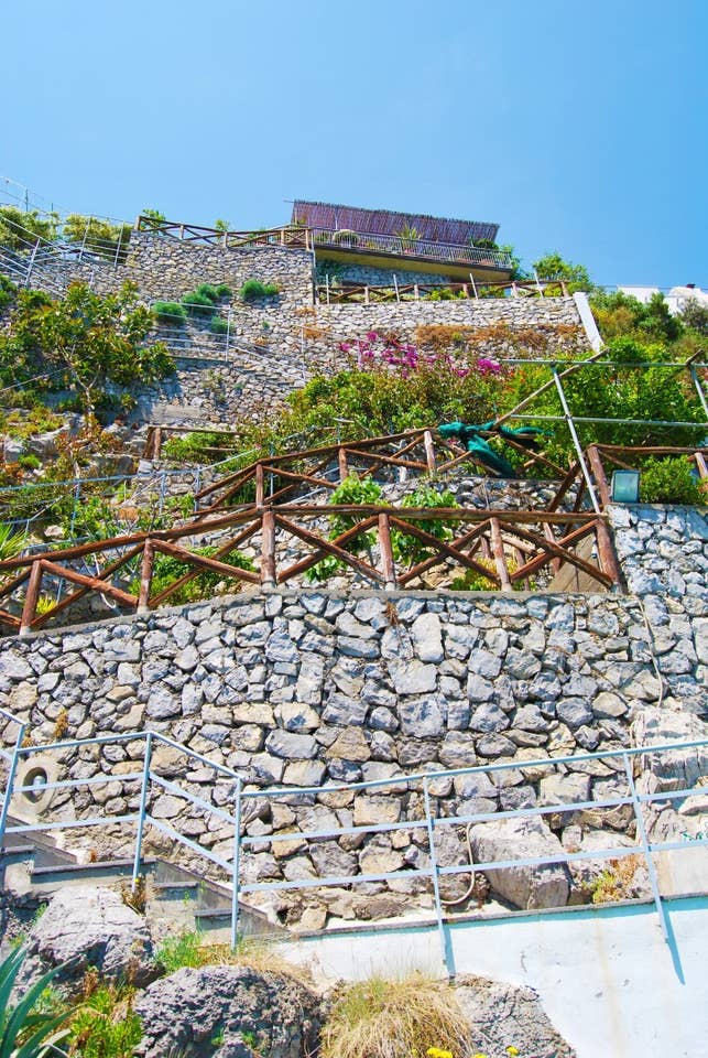 A set of romantic steps lead down from the villa to the sea via enchanting terraced gardens. The salt-water swimming pool has a jacuzzi area, a shower and a marvellous little room carved into the rock, which contains a fridge and handy bar/food corner. If you prefer a swim in the sea, there are metal steps for easy access in and out of the water. The private jetty is perfect for taking boat trips up and down the Amalfi Coast.