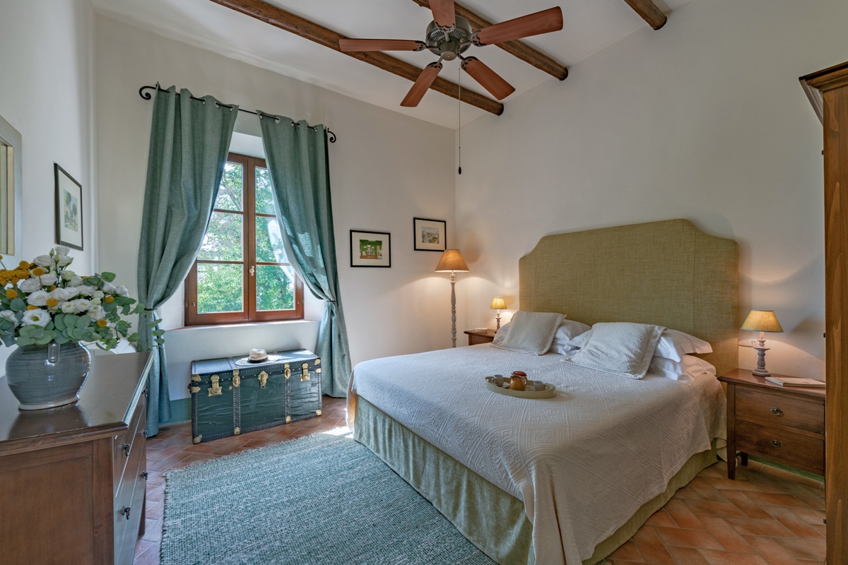 As already mentioned, please note that there is a tenth bedroom, a twin room located on the first floor of the South wing of the main villa (one of the eight rooms in the main villa), which does not have air conditioning. Due to this, this room is typically not included in the rental. Therefore, only seven rooms in the main villa are considered in the rental, in addition to the two rooms in the dépendance. This ensures maximum comfort for all guests during their stay.