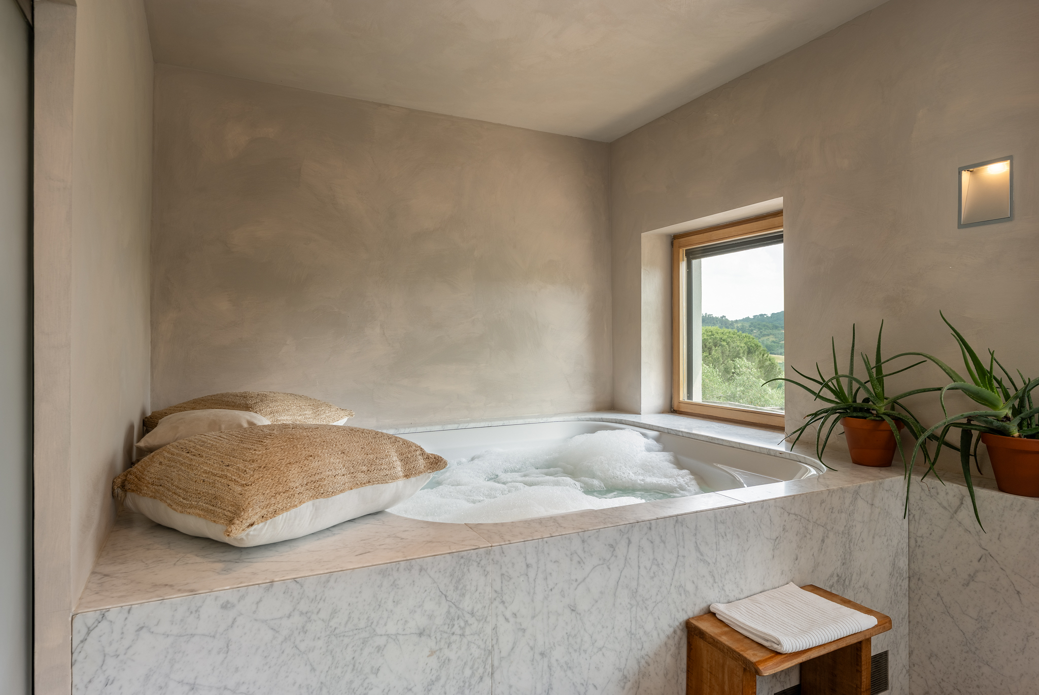 Enveloped by a generous garden with olive groves, the villa features an exclusive pool with Roman steps and a poolside area furnished with comfortable sun loungers, inviting guests to unwind. The pool is open from early May to late September. The tranquil outdoor area is an idyllic spot for sunbathing and enjoying moments of relaxation. The well-maintained gardens offer various relaxation spots, including a dining area. Enjoy al fresco dining under the Tuscan sun or unwind with a glass of wine amidst the serene surroundings.