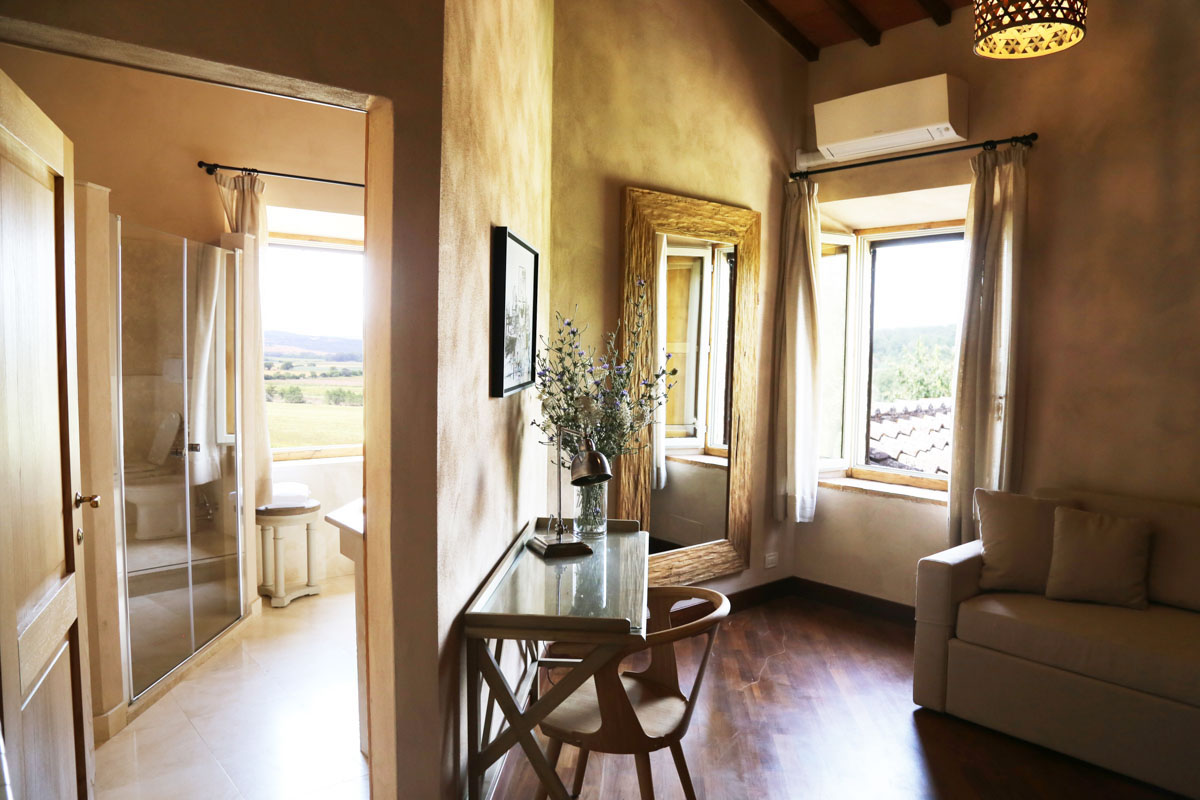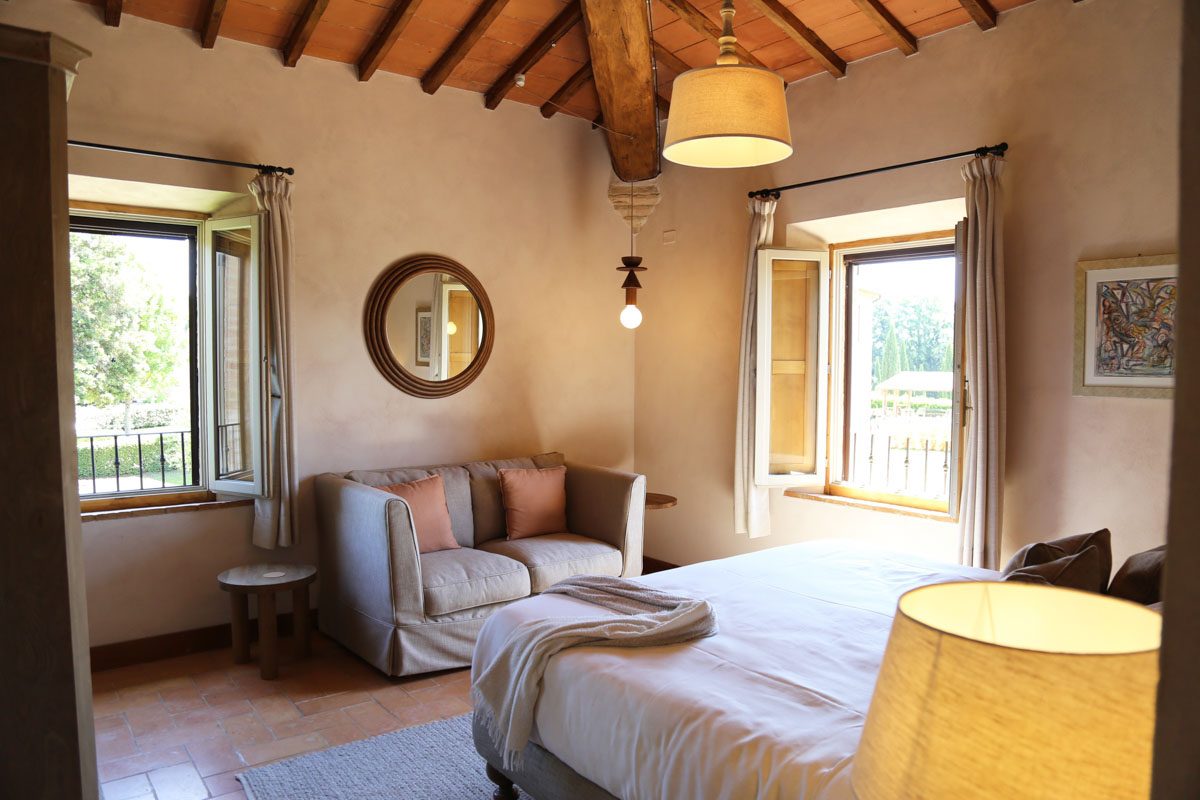 Nestled atop a picturesque hill, Villa Casalone offers sweeping views of the estate vineyards and the historic towns of Montalcino and Castiglion del Bosco. This 18th-century architectural gem has been meticulously renovated to seamlessly blend elegance with modern comfort. With seven double bedrooms spread across two floors, Villa Casalone can accommodate up to fourteen guests, making it an ideal retreat for families or groups seeking a luxurious Tuscan experience.