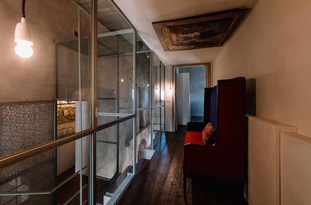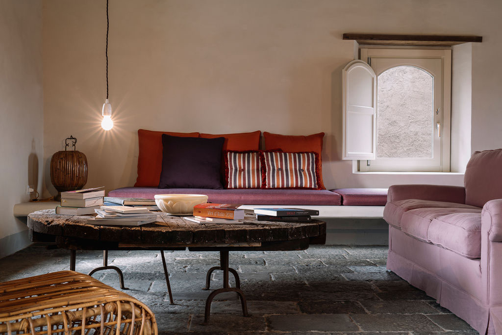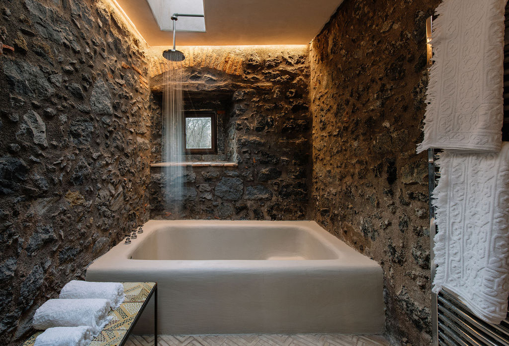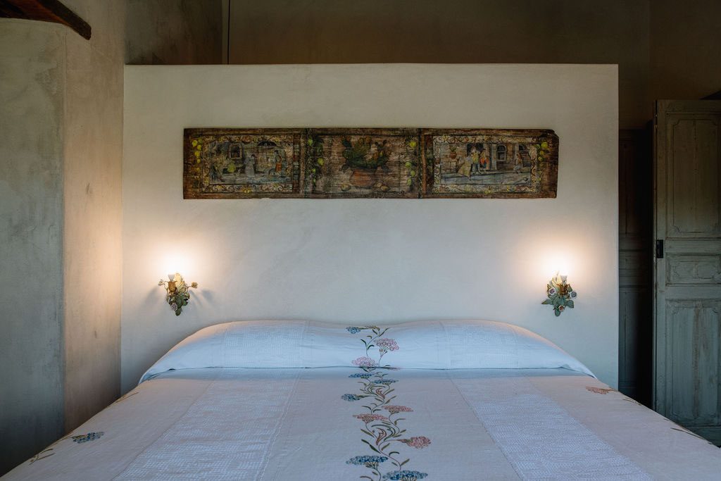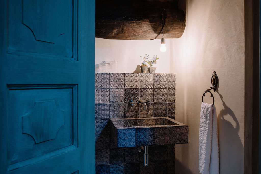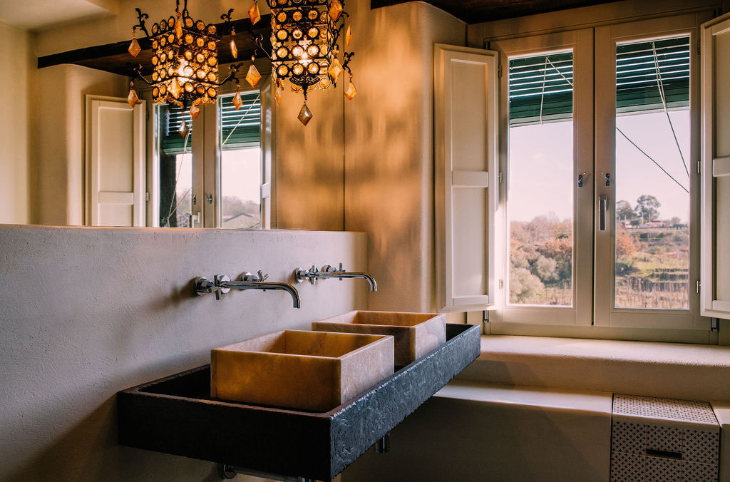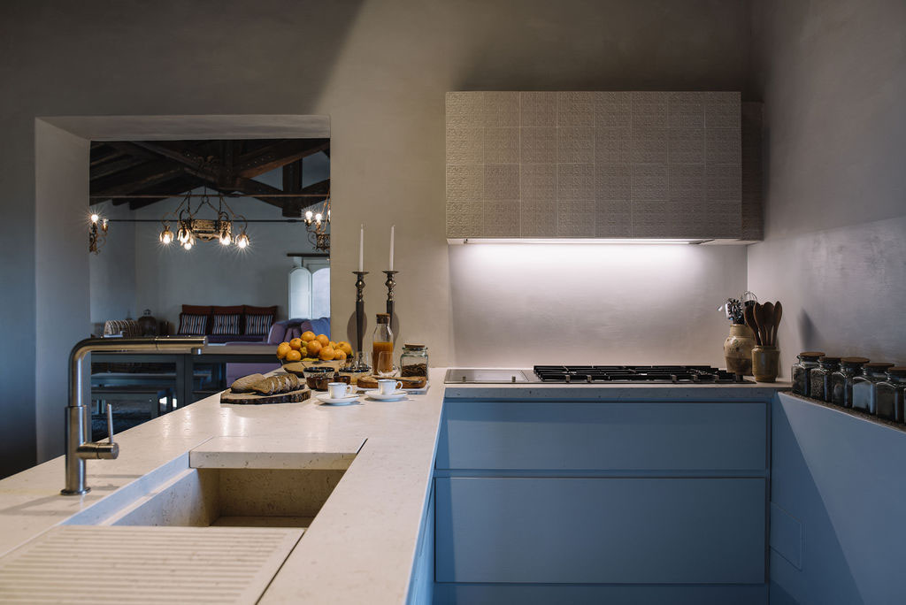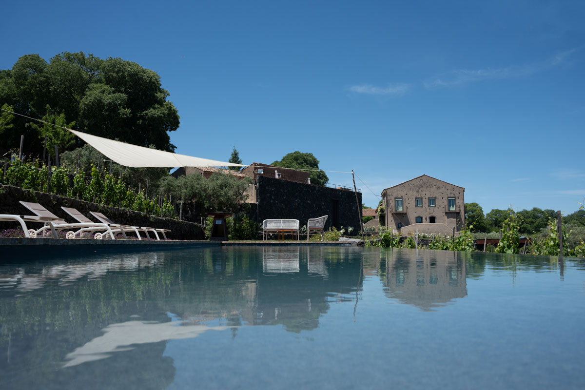 The interiors capture the essence of Sicily through a blend of traditional craftsmanship and contemporary design. Decorative lava stone, wrought iron accents, and intricate lace details adorn the rooms, evoking a warm yet refined atmosphere. Each of the seven bedrooms is uniquely styled to provide an immersive experience, inspired by the estate's winemaking heritage and the timeless allure of the Sicilian landscape. Guests can enjoy modern comforts while surrounded by touches of Sicily’s rich heritage.