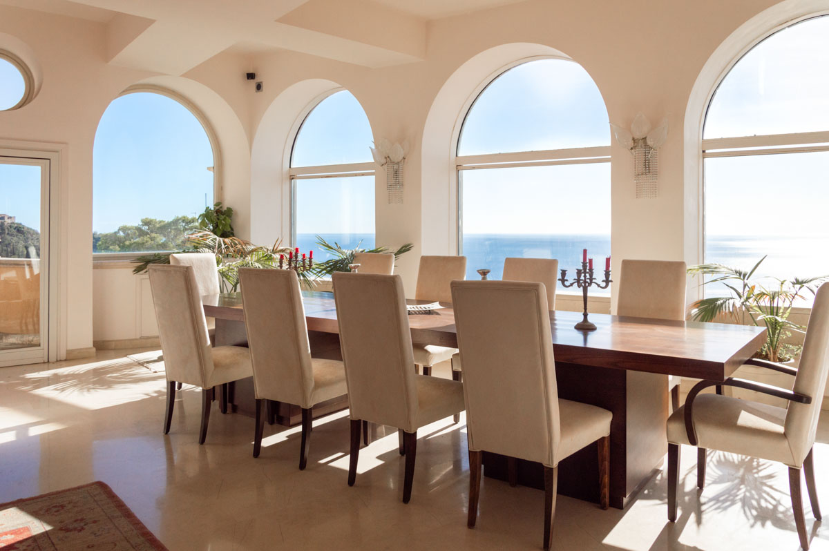 On the ground floor, the main house features a large living area, a fully-equipped kitchen, a dining room, and a convenient guest bathroom. The dining area, surrounded by large windows, is bathed in natural light, creating an inviting space to savour Sicily’s finest cuisine. On the upper floor, the penthouse offers an intimate retreat with a double bedroom, en-suite bathroom with a shower, walk-in closet, and a private terrace overlooking Taormina. In addition to the bathroom, the penthouse room also features a Jacuzzi.