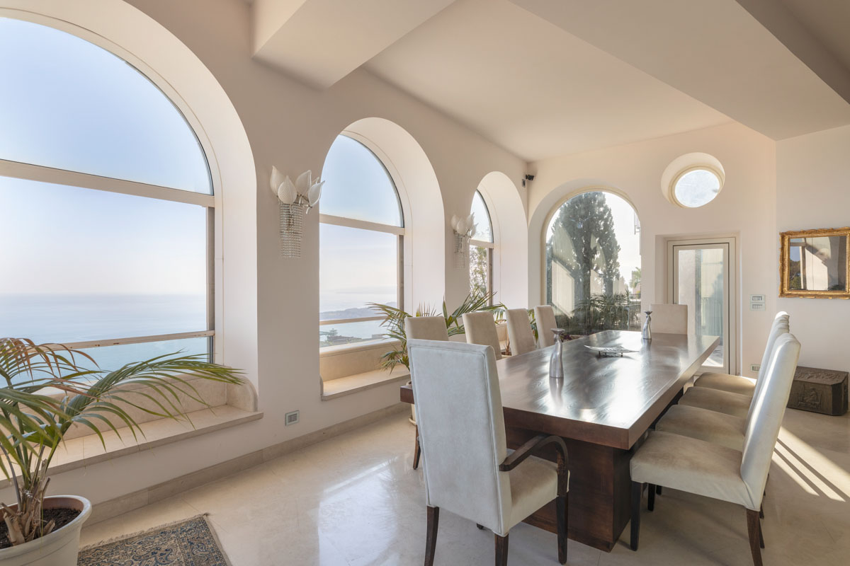 The villa’s exquisite outdoor spaces invite relaxation and indulgence. A sundeck with a heated infinity pool offers mesmerising views of the sea and the majestic silhouette of Mount Etna, creating an unparalleled atmosphere of serenity. The beautifully landscaped garden provides a tranquil escape, while the terraces offer the perfect setting for al fresco dining. Private parking ensures convenience, with direct access to the main road and just a few steps leading to Taormina’s vibrant Corso Umberto.