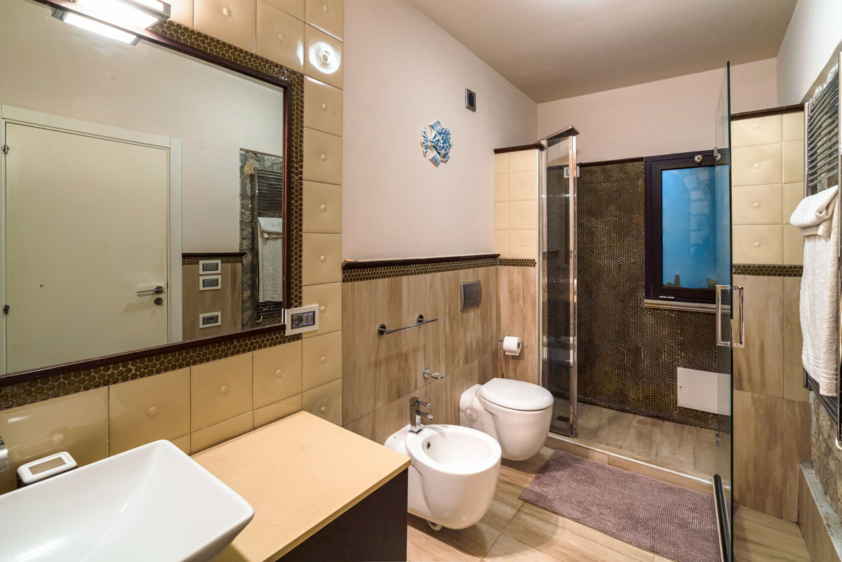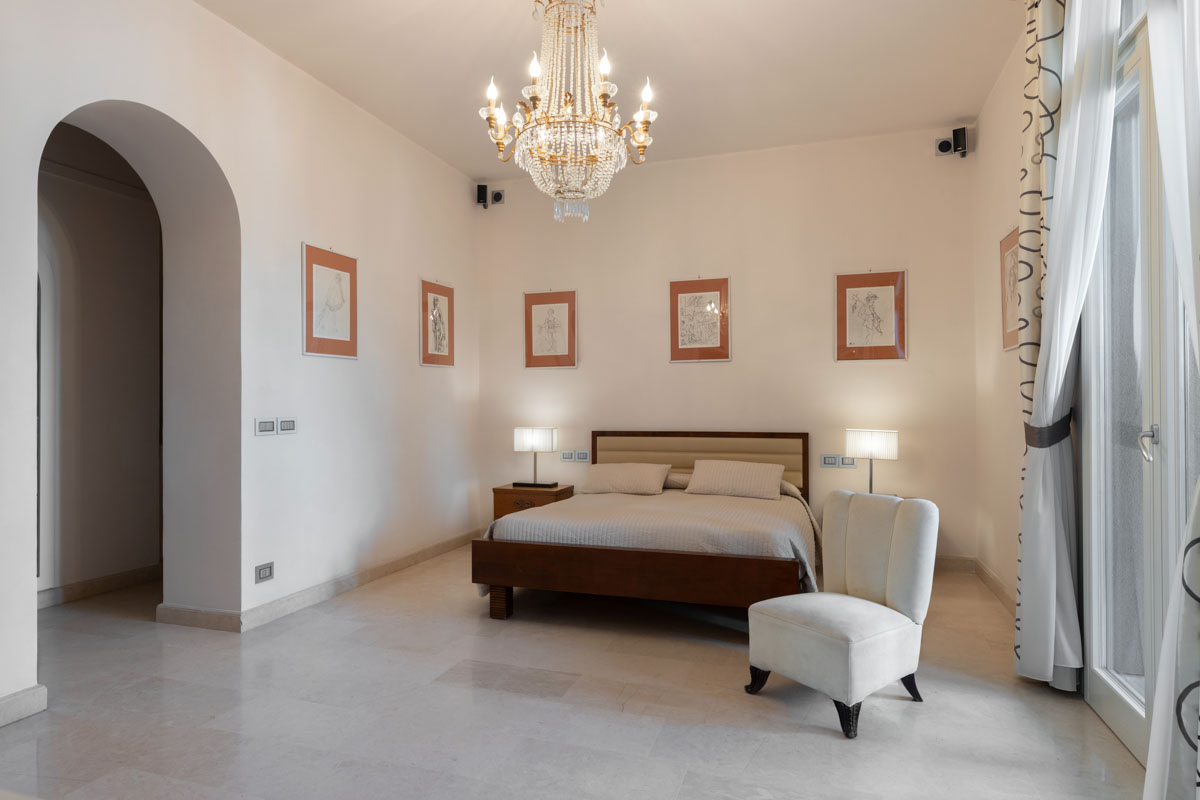On the lower floor, you will find a second fully-equipped kitchen, ideal for preparing meals with ease, as well as two beautifully appointed double bedrooms: a master suite with a king-size bed, an en-suite bathroom with a shower, and a private terrace; and a second double bedroom with a king-size bed and en-suite bathroom with a shower. Designed for the utmost comfort, the villa is equipped with air conditioning in all rooms, Sky TV, and a dedicated laundry room.