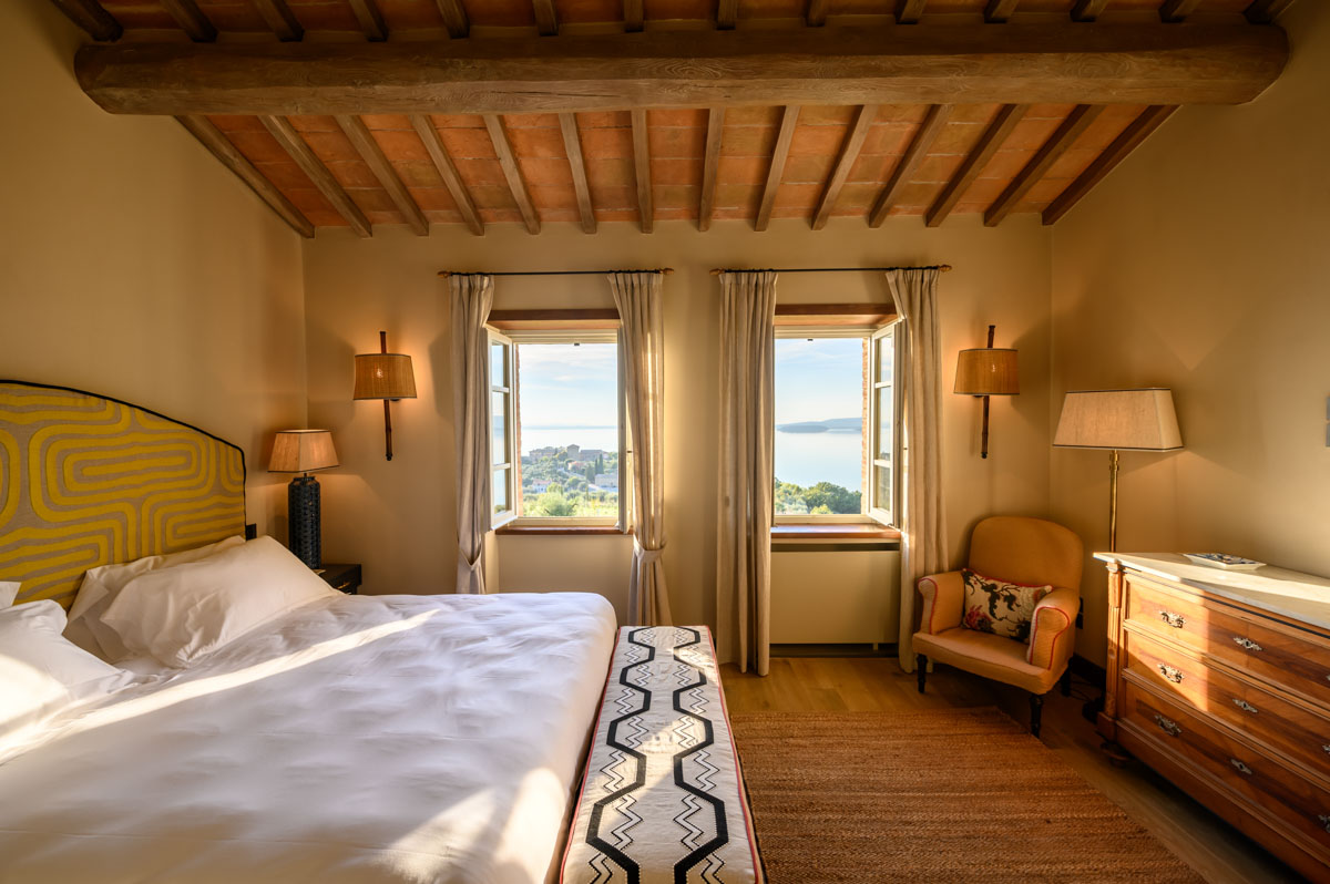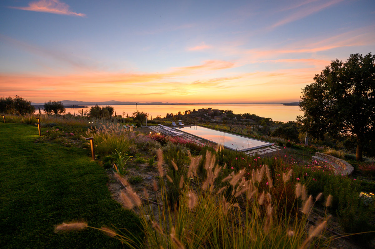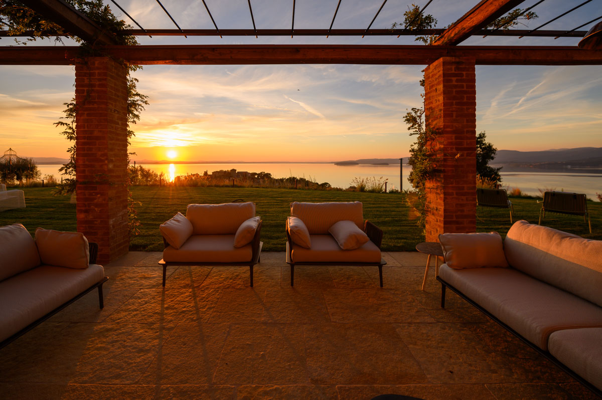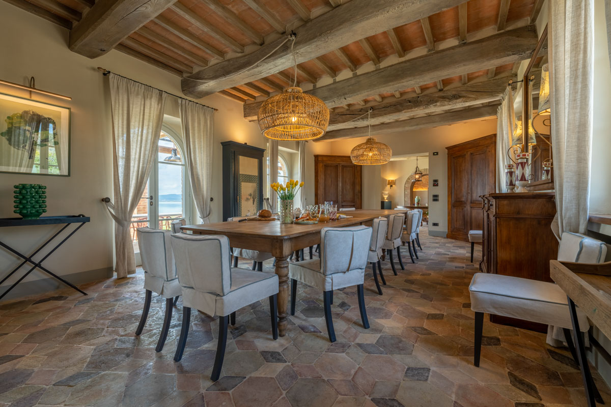 Perched atop a small hill and offering an unparalleled panorama, Property 1708344426 overlooks the serene Lake Trasimeno and its three islands, as well as the village of Monte del Lago and the Umbrian countryside. With a thoughtful mix of local craftsmanship, custom-made furniture, and original art, Property 1708344426 has been elegantly restored, providing an unforgettable retreat in Umbria. Property 1708344426 can sleep 16 guests in 8 double bedrooms split between the main villa and the dépendance, plus 2 extra guests on 2 sofa beds.