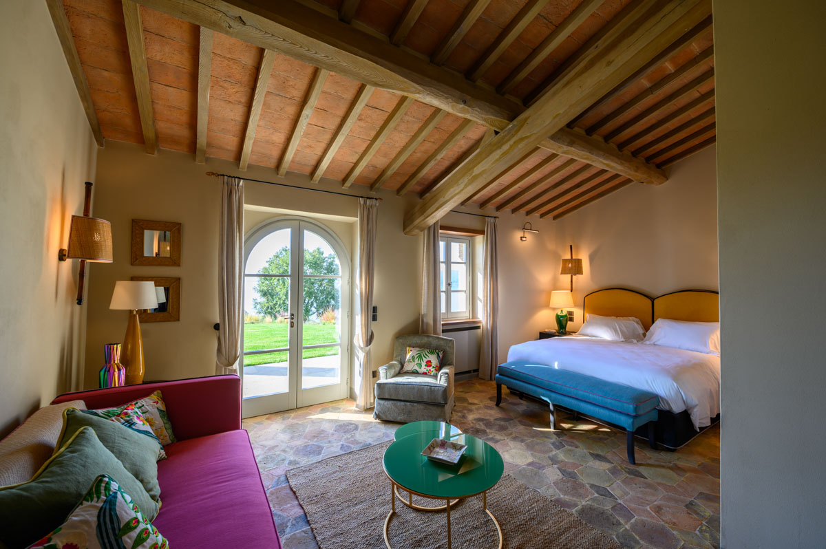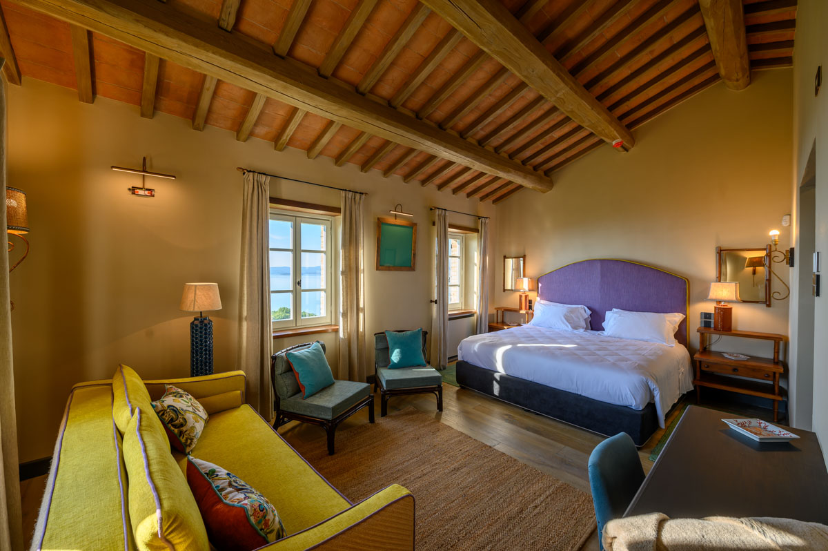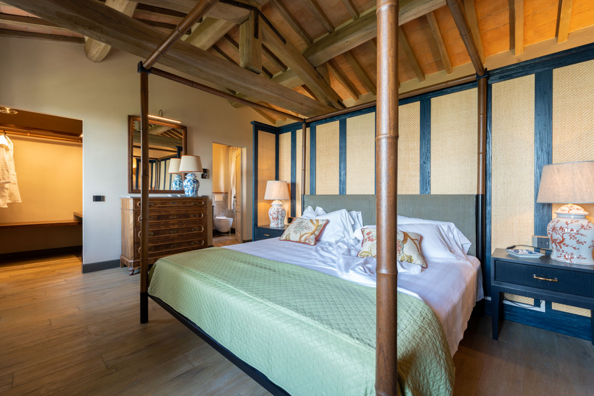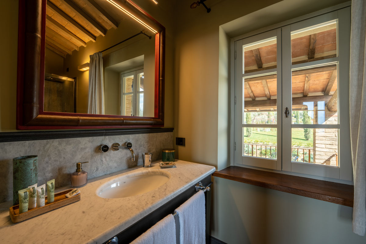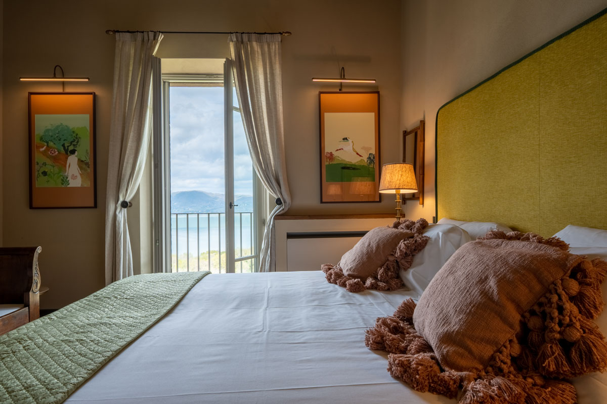 Perched atop a small hill and offering an unparalleled panorama, Property 1708344426 overlooks the serene Lake Trasimeno and its three islands, as well as the village of Monte del Lago and the Umbrian countryside. With a thoughtful mix of local craftsmanship, custom-made furniture, and original art, Property 1708344426 has been elegantly restored, providing an unforgettable retreat in Umbria. Property 1708344426 can sleep 16 guests in 8 double bedrooms split between the main villa and the dépendance, plus 2 extra guests on 2 sofa beds.
