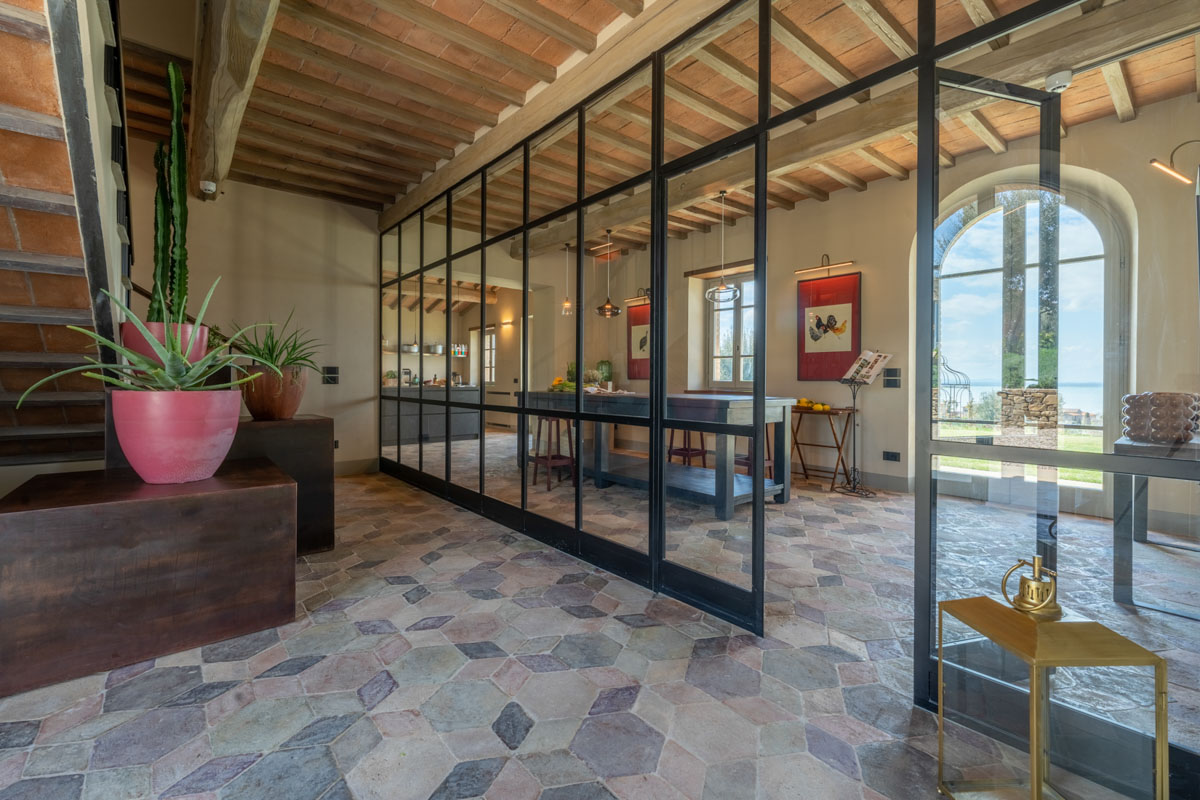 Located in the charming village of Monte del Lago, Property 1708344426 offers stunning views over the tranquil Lake Trasimeno and its three islands, as well as the unspoiled Umbrian countryside. The villa’s prime position allows guests to enjoy a unique panorama, where the serene blue waters of the lake blend seamlessly with the lush, rolling hills of the region. This peaceful setting provides the perfect escape, while still being within easy reach of the area's cultural attractions.