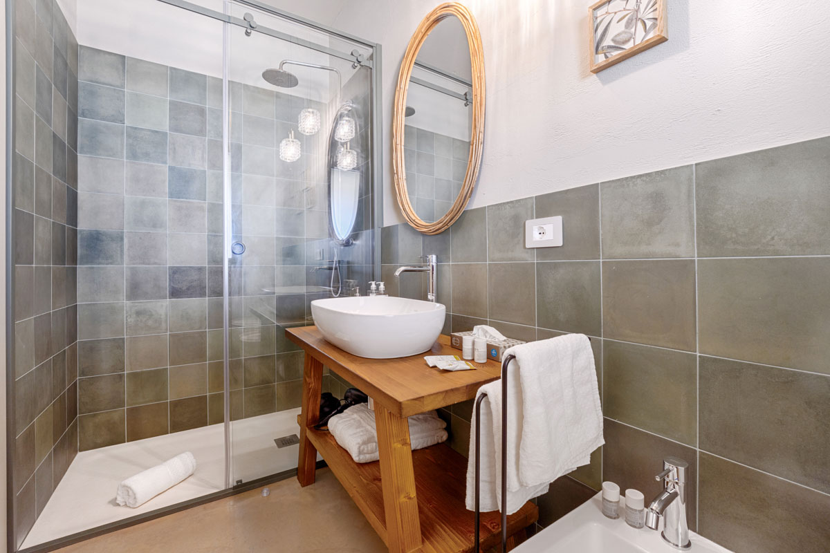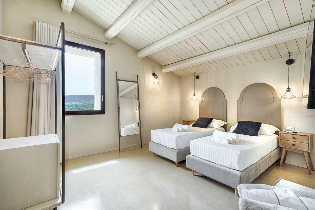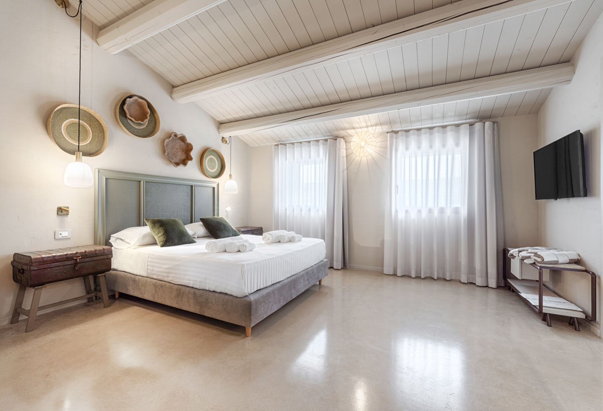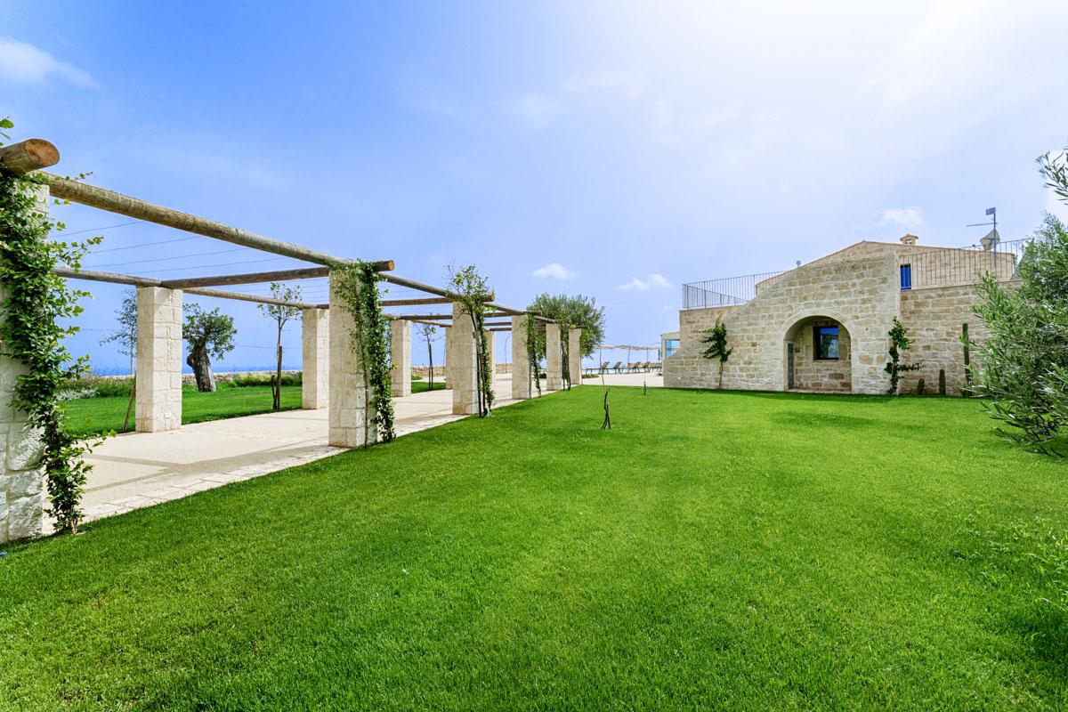 A driveway lined with columns leads through the entrance gates to the swimming pool (18 x 5.5 m, depth 1.40 m). Around the pool, a spacious sunbathing area with loungers and parasols invites guests to unwind, while the beach-style entrance is perfect for a gentle dip. Overlooking the pool and garden, a 100-sqm covered veranda provides a spot for outdoor dining or simply enjoying the view. Nearby, a barbecue area and electric car charging point add extra convenience for easygoing days and warm Sicilian evenings.
