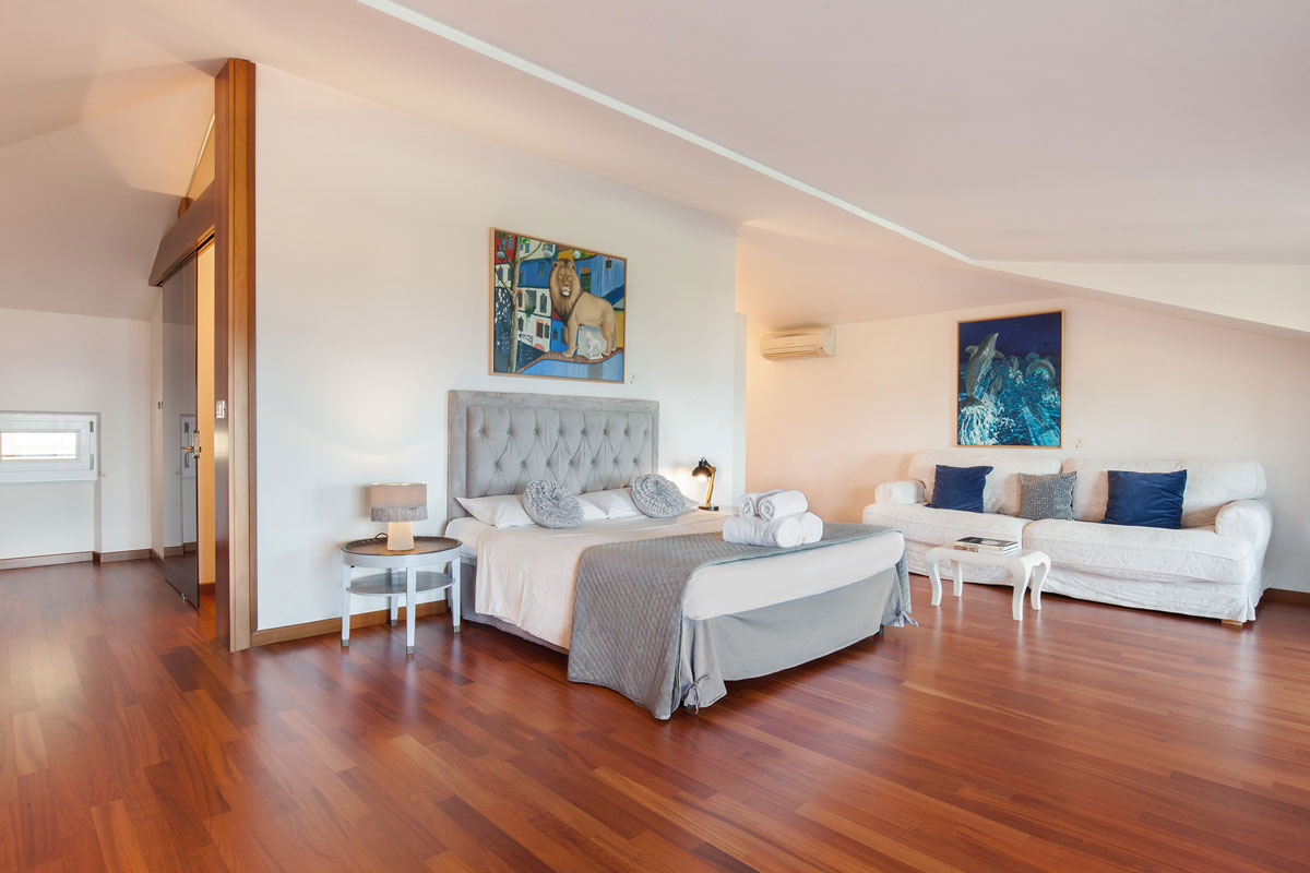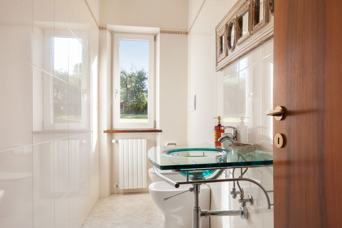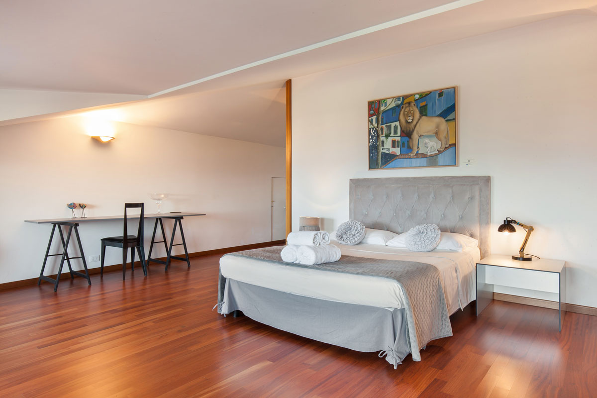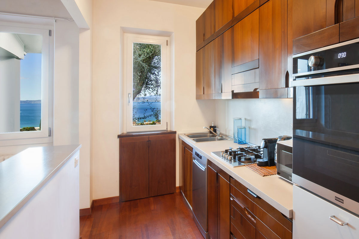 The villa accommodates four bedrooms, including a twin room, providing flexible sleeping arrangements. One of the double bedrooms is located on the upper floor and boasts a private balcony with stunning views over the garden and Lake Garda, a serene retreat for morning coffee or evening relaxation. There are four luxurious bathrooms, one of which features a relaxing bathtub. The tavern features a comfortable sofa bed for two additional guests. Please note that one of the double bedrooms on the ground floor and the twin room do not have air conditioning.
