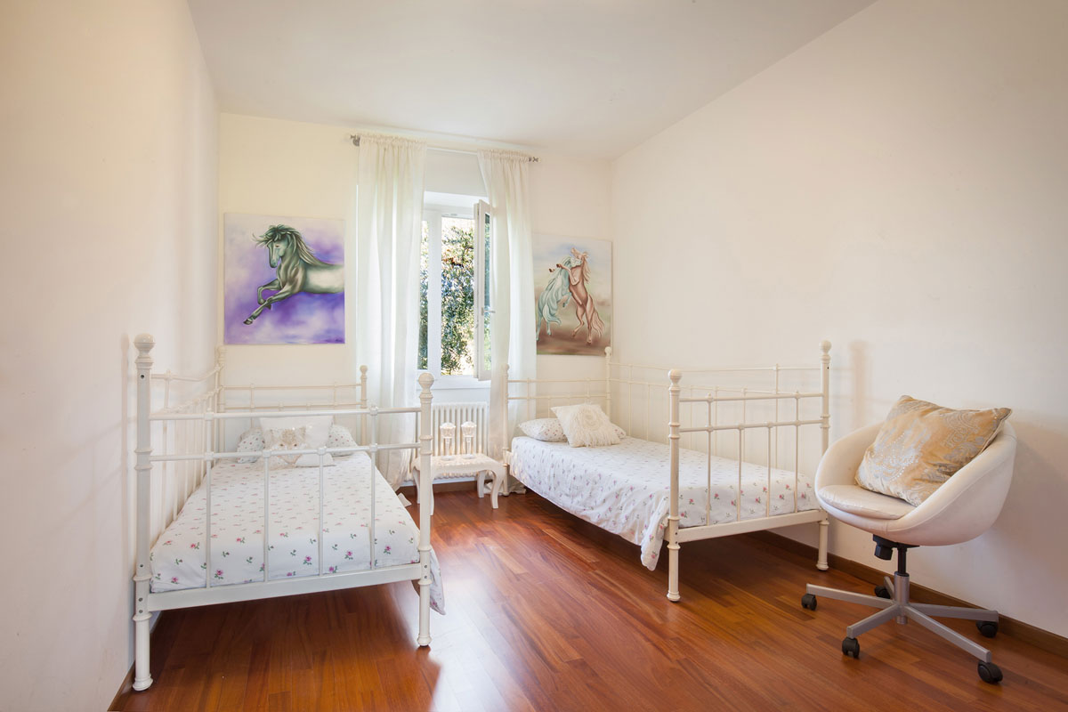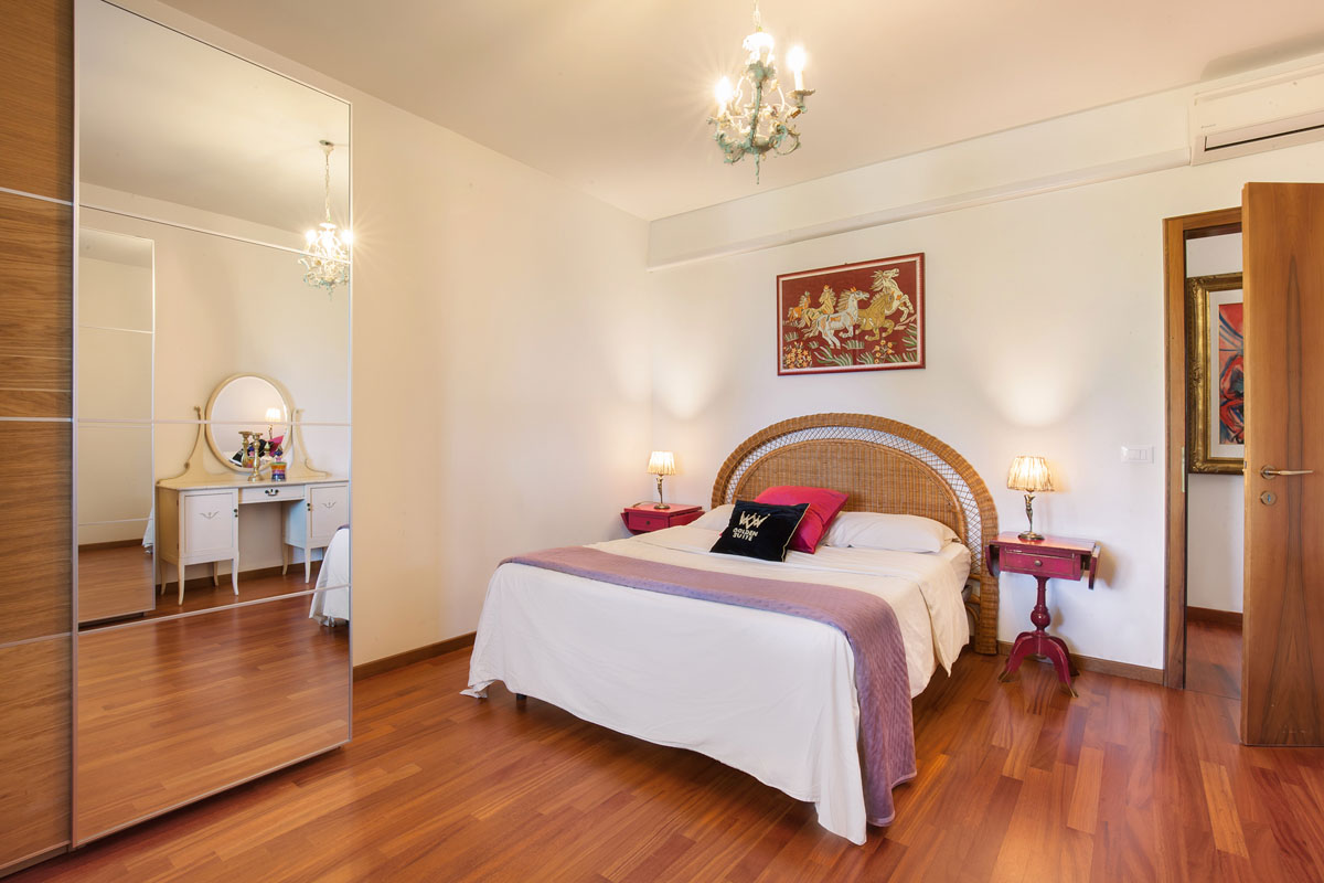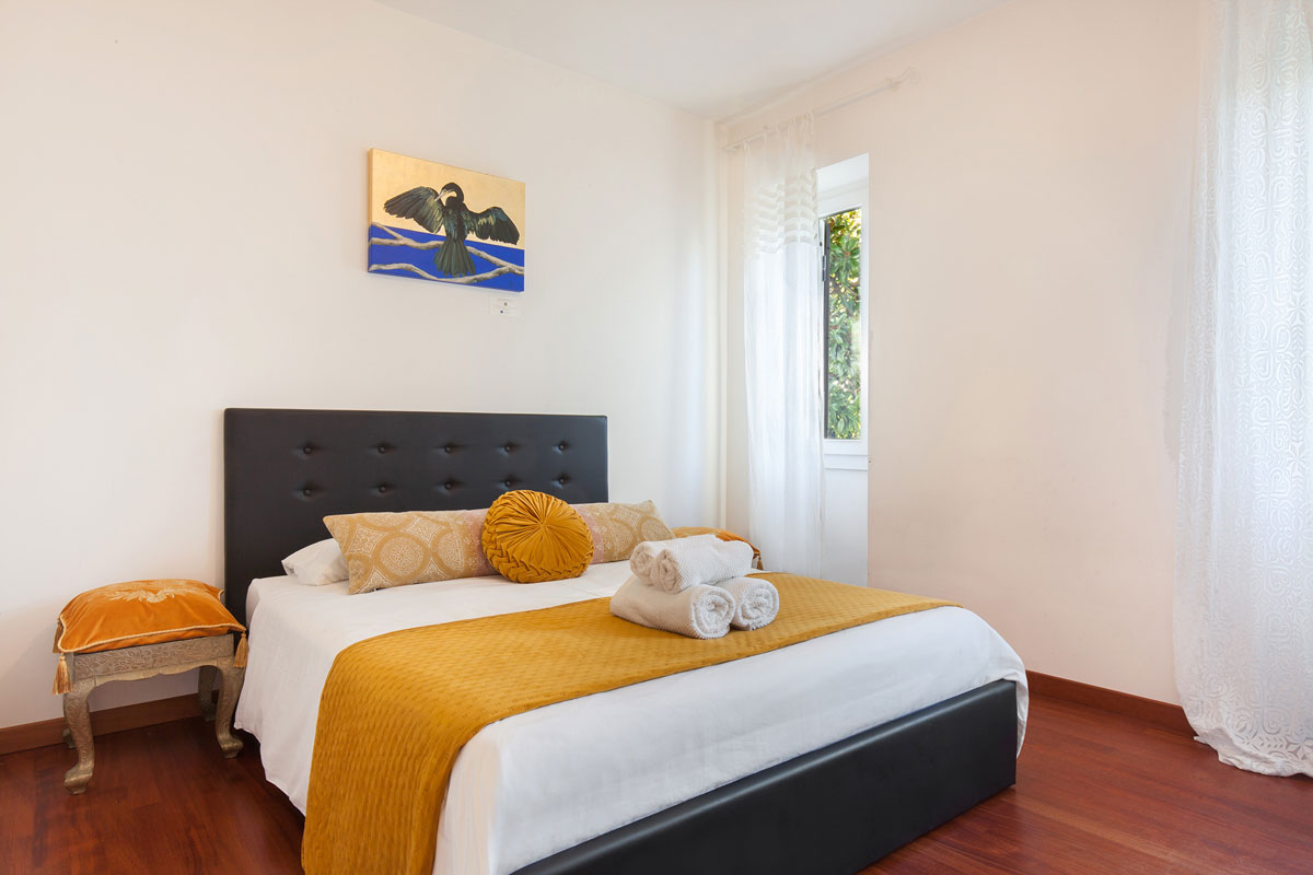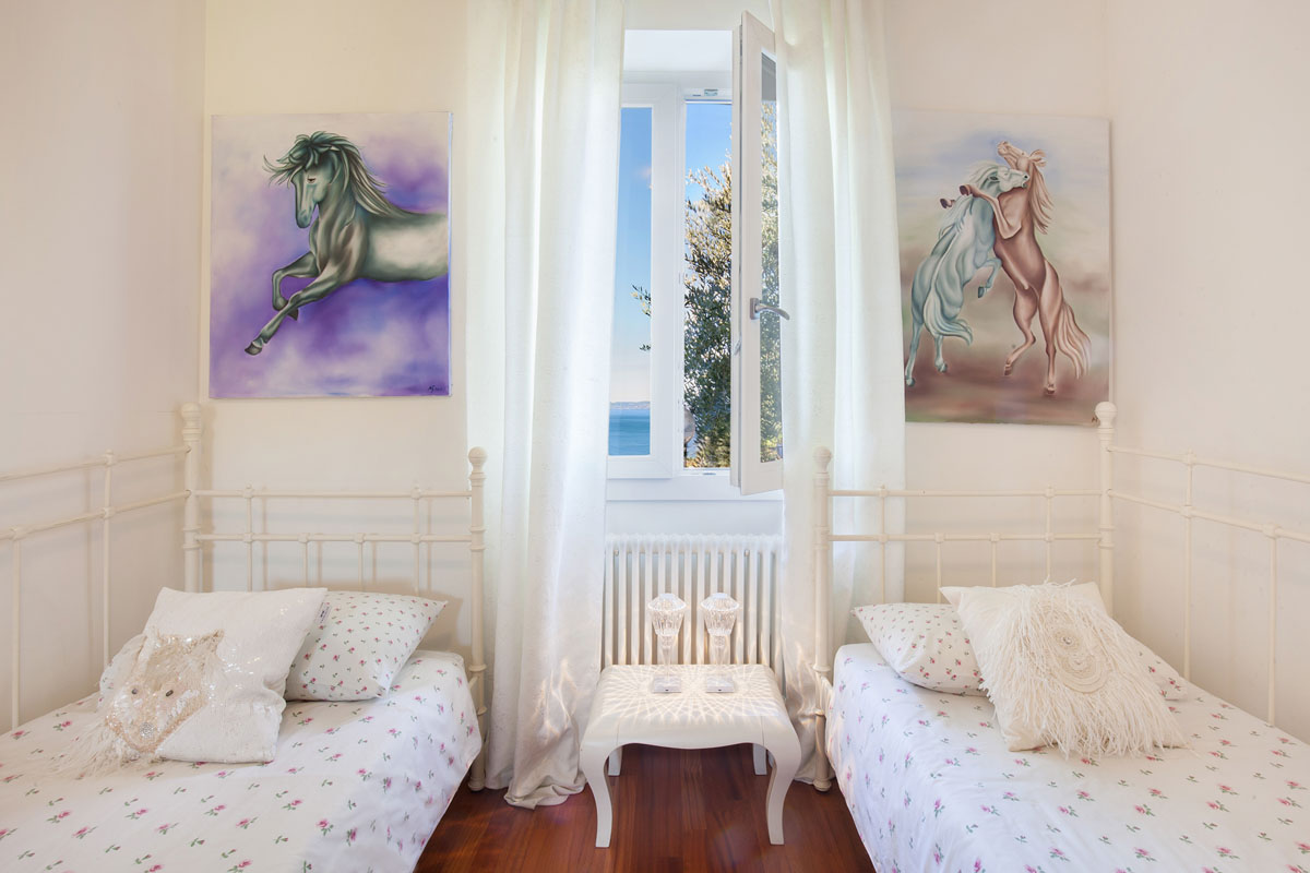 The villa accommodates four bedrooms, including a twin room, providing flexible sleeping arrangements. One of the double bedrooms is located on the upper floor and boasts a private balcony with stunning views over the garden and Lake Garda, a serene retreat for morning coffee or evening relaxation. There are four luxurious bathrooms, one of which features a relaxing bathtub. The tavern features a comfortable sofa bed for two additional guests. Please note that one of the double bedrooms on the ground floor and the twin room do not have air conditioning.
