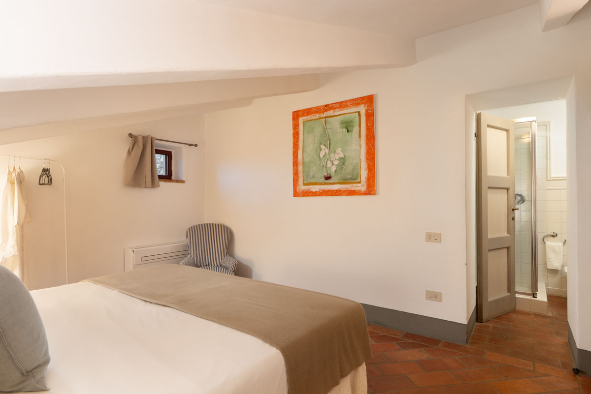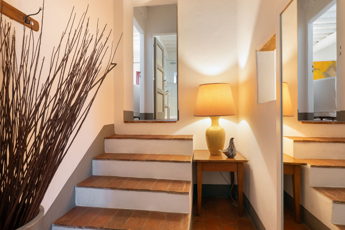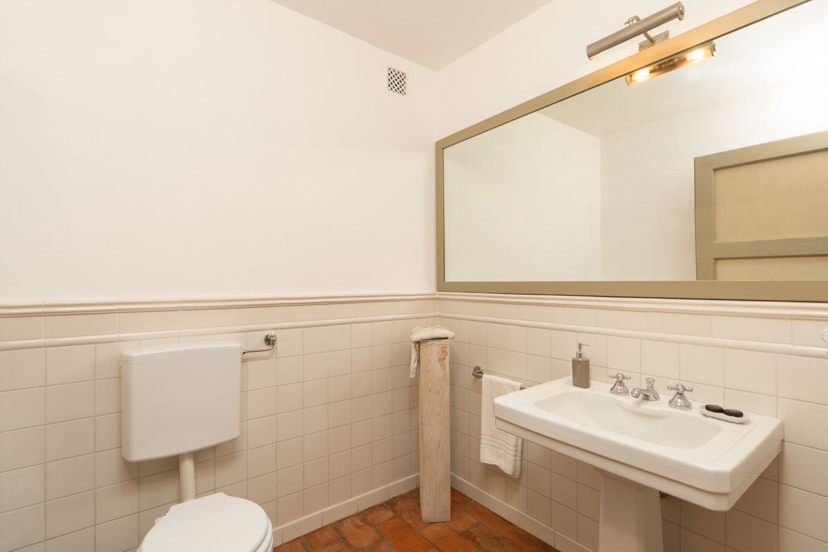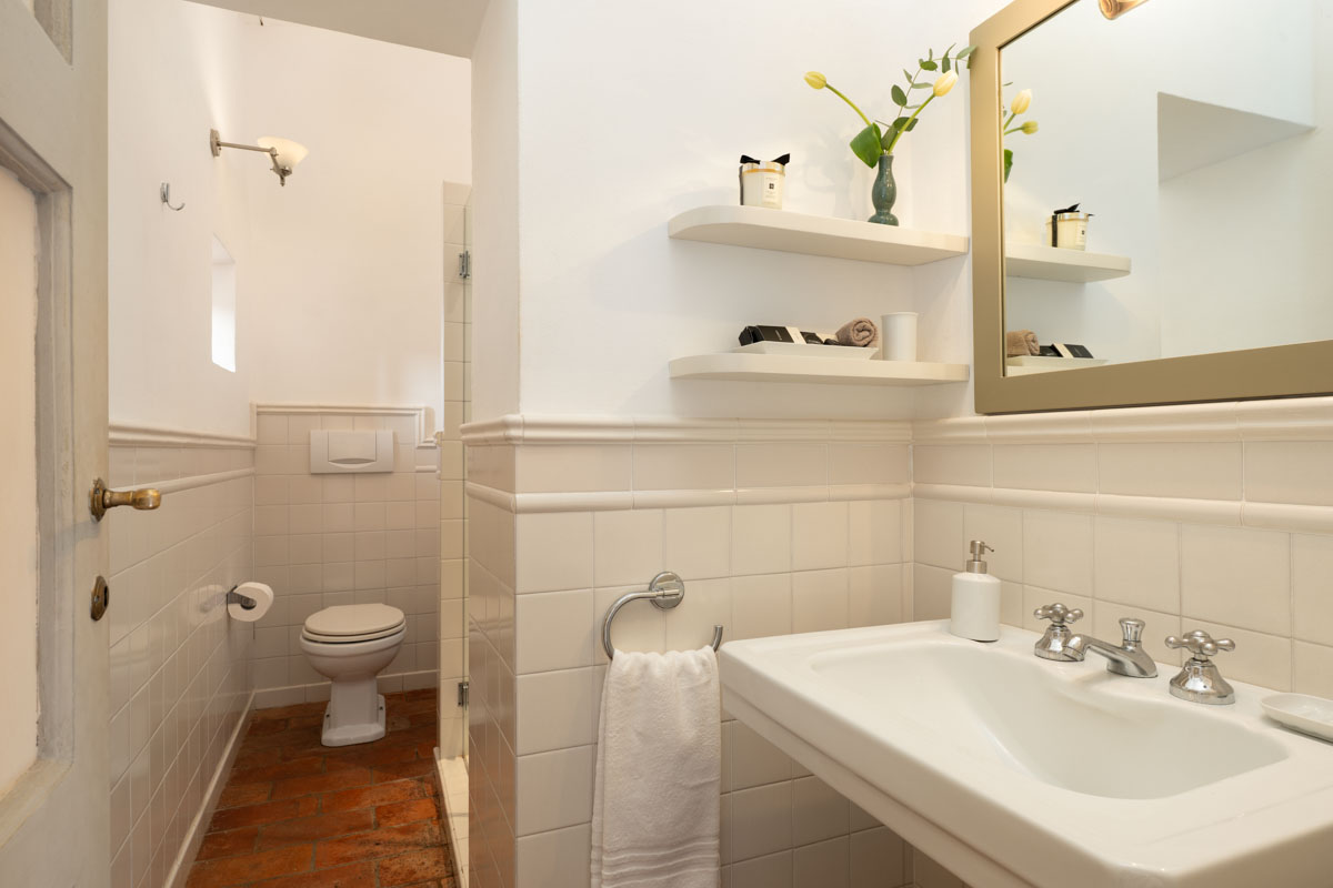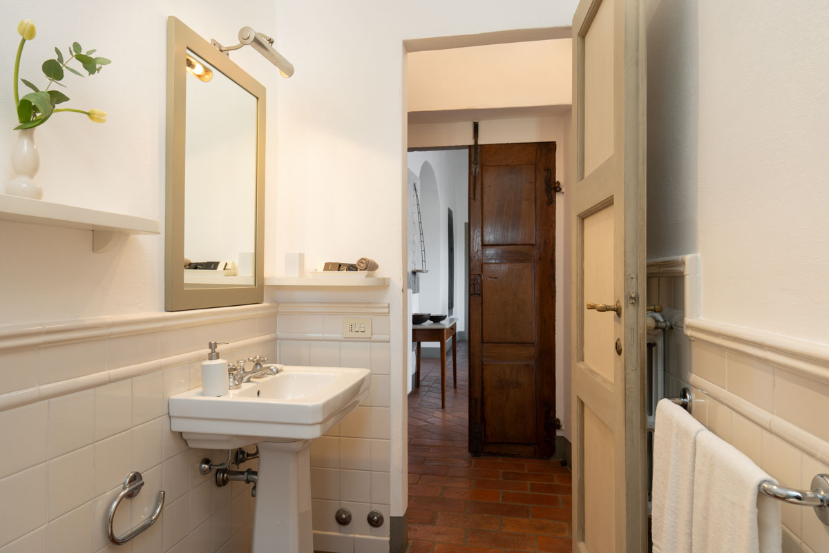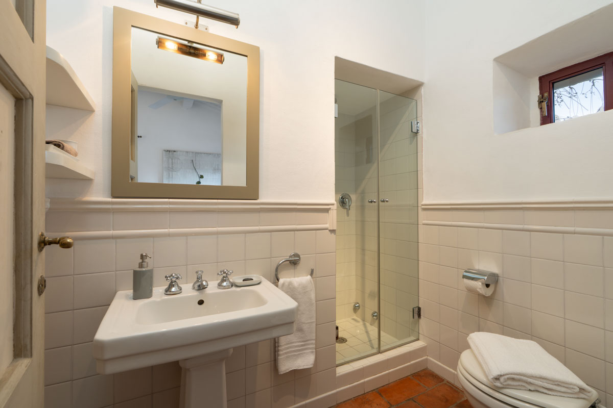 Bedrooms. On the ground floor,a few steps lead to two bedrooms (which can be twin rooms or double bedrooms) with en-suite bathroom. One bathroom has bathtub with shower, while the other one has shower only. On the first floor you will find three bedrooms (which can be twin rooms or double bedrooms) with en-suite bathroom with shower. On the first floor you will also find a double bedroom with en-suite bathroom with shower. On the first floor you will find a single room with en-suite bathroom with shower. In this single room, an extra single bed can be added on request (and at no additional cost).