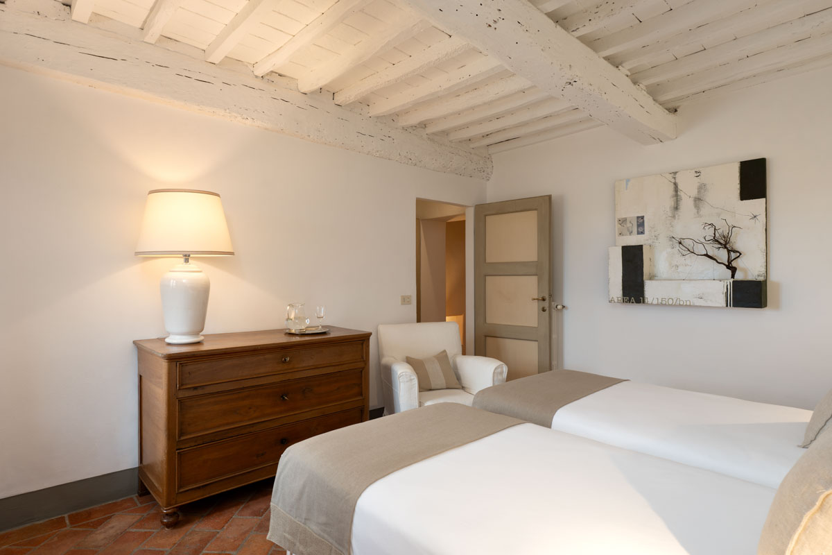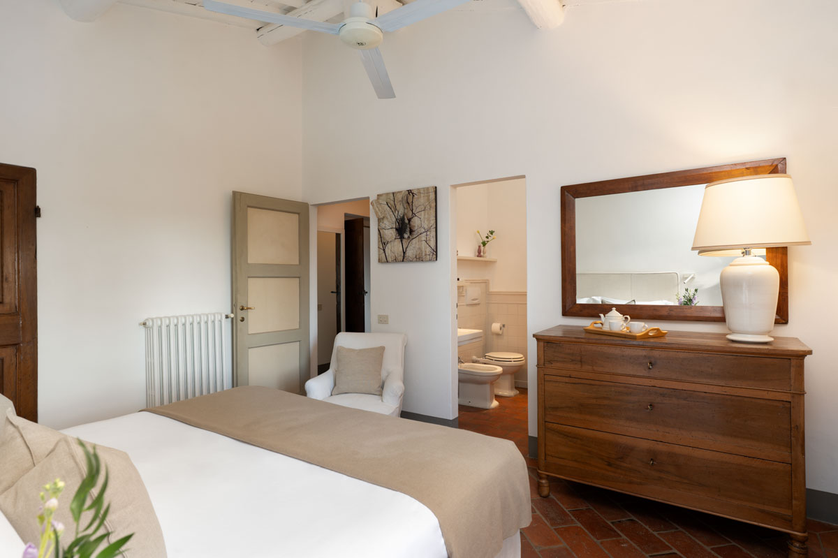 Set in a serene countryside of gently rolling hills, Property 475 provides the perfect retreat for those seeking complete privacy and relaxation in the heart of Tuscany, in the Chianti area. With wonderful views of the surrounding olive groves and vineyards, this magnificent villa has been masterfully restored while preserving the atmosphere of a traditional Tuscan farmhouse. Offering warm spaces, Property 475 can accommodate thirteen guests (plus one extra guest on request at no additional cost) featuring seven bedrooms (six double bedrooms and one single room) with en-suite bathroom spread over two floors. A guest house featuring one twin room with bathroom is available on request.