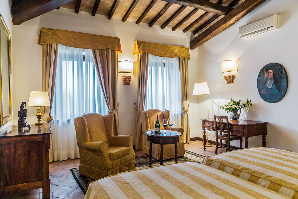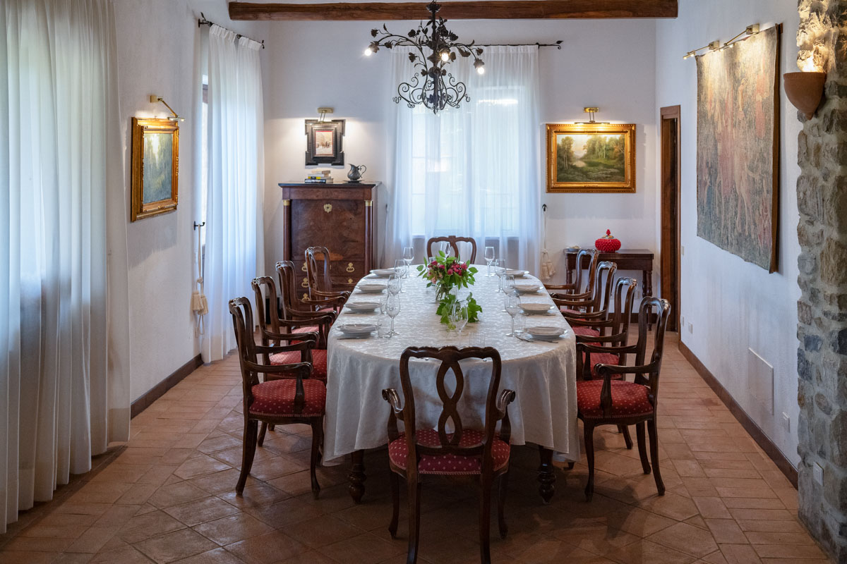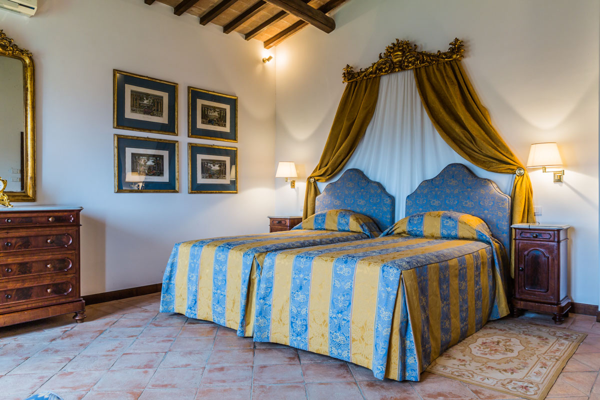 On the first floor, four elegant suites boast spacious layouts and private en-suite bathrooms, each equipped with both a bathtub and a shower for ultimate comfort. Specifically, there are two double bedrooms and two twin bedrooms, which can be converted into double bedrooms upon request. Each suite is adorned with carefully selected antique furnishings and refined details, enhancing the villa's timeless charm, and evoking a sense of history and sophistication throughout the space.